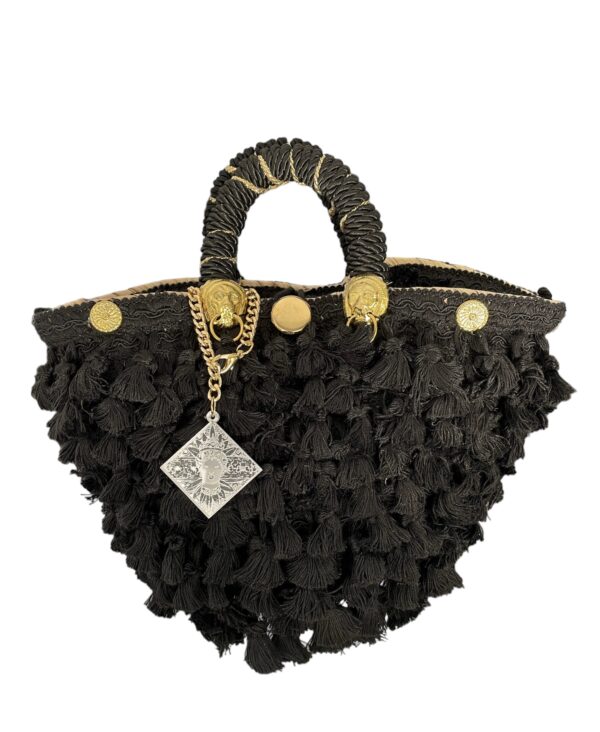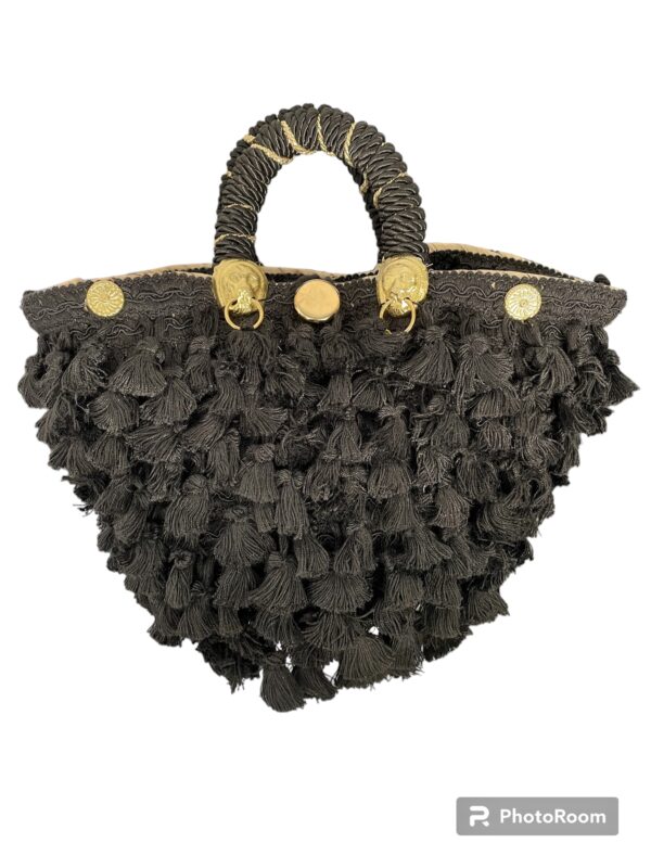 Rivestita totalmente con Passamaneria di ciuffi di frange nere